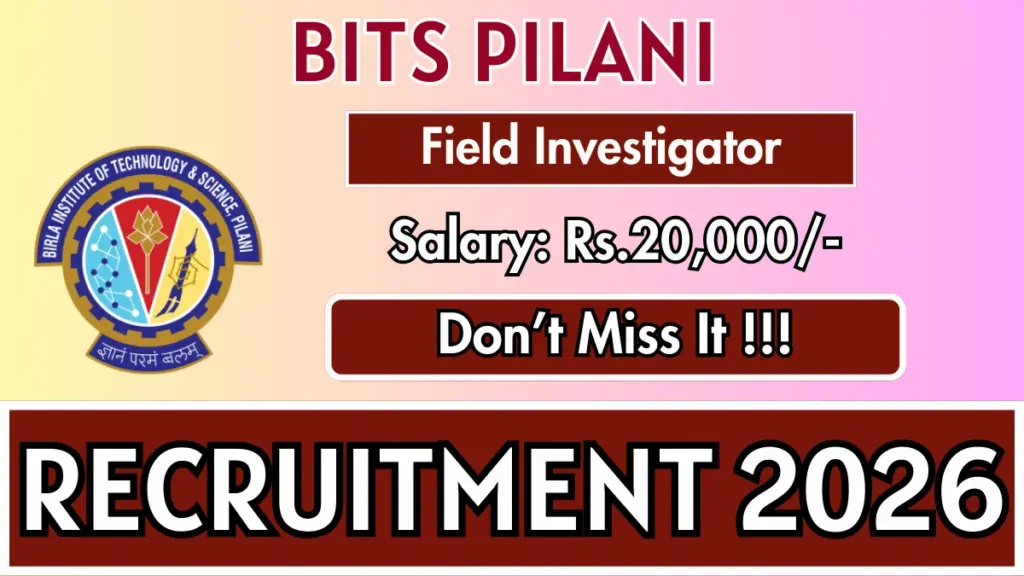 Birla Institute of Technology & Science (BITS) Pilani has announced recruitment for 01 Field Investigator post. Interested and eligible candidates are invited to apply online via the official BITS Pilani website. The application deadline is 05/02/2026. This article provides comprehensive details regarding the BITS Pilani Field Investigator recruitment, covering eligibility criteria, salary, selection process, application procedure, and essential links.