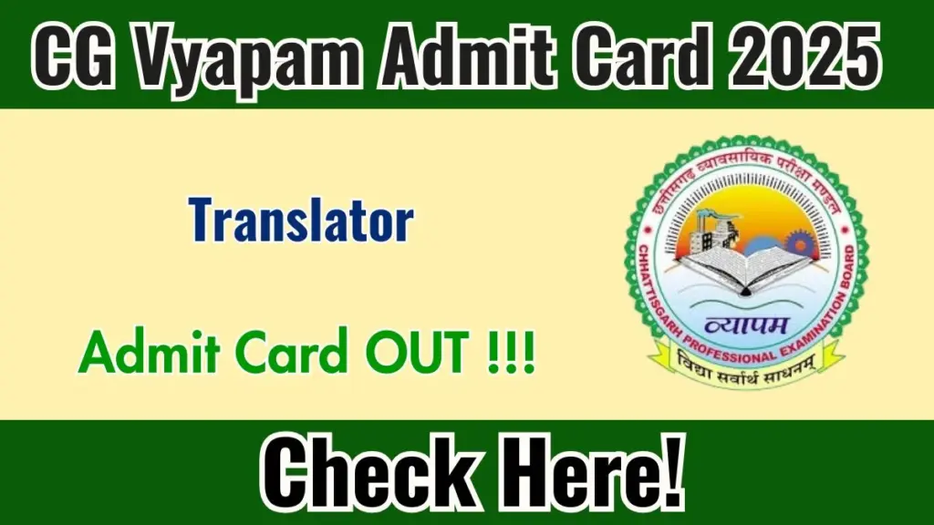 | CG Vyapam Translator Admit Card 2025 | Available | Download Now |