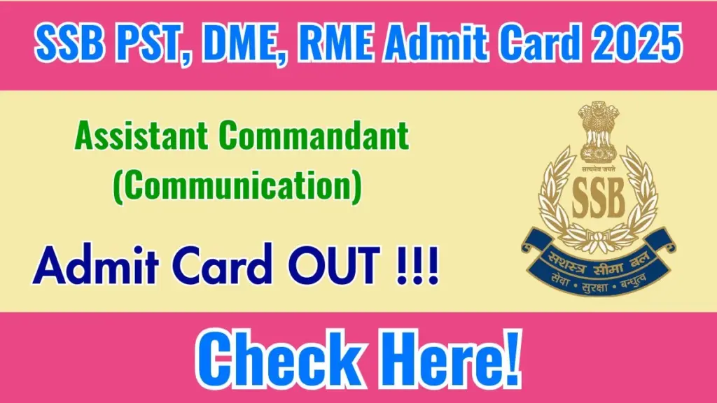 | SSB Assistant Commandant (Communication) PST, DME, RME Admit Card 2025 | Available | Download Now |