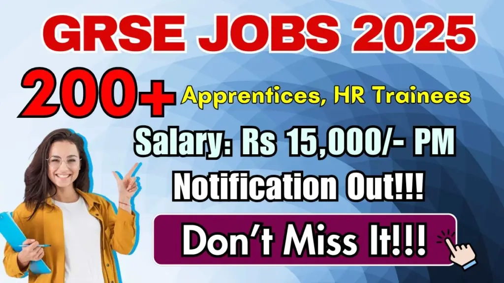 Garden Reach Shipbuilders & Engineers Limited (GRSE) has released the Apprenticeship & HR Trainee Recruitment 2025-26 Notification for 226 posts. The online application process will start from 20 December 2025 onwards at www.grse.in.
