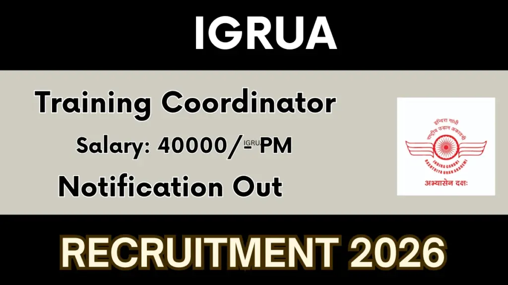 Indira Gandhi Rashtriya Uran Akademi (IGRUA) has released a recruitment notification for the Training Coordinator position in 2026. A single vacancy has been announced for this role on the official website igrua.gov.in.