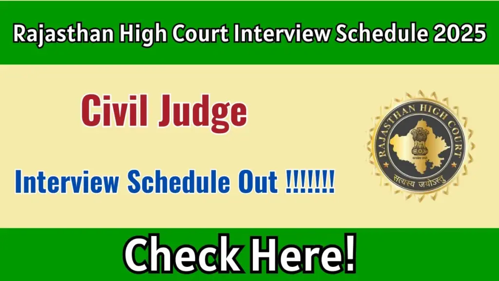 Rajasthan High Court Civil Judge Interview Schedule 2025 – Dates, Locations, and Required Documents 33 views undefined Share this: Click to share on Facebook (Opens in new window) Facebook Click to share on X (Opens in new window) X WhatsApp Group Join Now Telegram Group Join Now